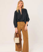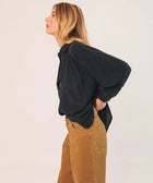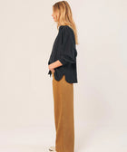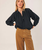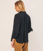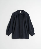 Wenn du weit geschnittene Blusen magst, wirst du diese lieben. Die Raglanärmel und die feine Faltenlegung am Kragen verleihen ihr Volumen und Bewegung. Der Stoff aus Krepp-Baumwolle sorgt für eine leichte, strukturierte Haptik.