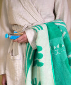 Gefertigt werden die Handtücher in Portugal, in Zusammenarbeit mit einem familiengeführten Traditionsbetrieb, der für seine hochwertigen Jacquard-Webarten bekannt ist.