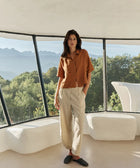Die Hose lässt sich gut mit der passenden Bluse oder Weste aus derselben Serie kombinieren.
