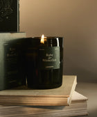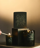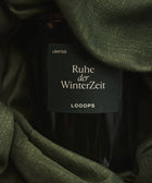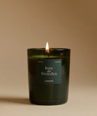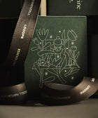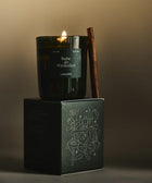 LIMITIERTE WINTEREDITION 2025 Kerzenglas und Verpackung in tiefem Grün. Leise und klar. Die Ruhe des Winters. Mit Illustration von Christopher de Lorenzo.
