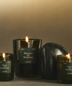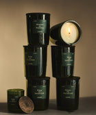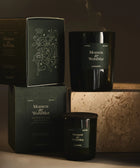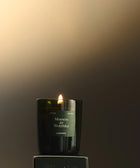 LIMITIERTE WINTEREDITION 2025 Kerzenglas und Verpackung in tiefem Grün. Leise und klar. Die Ruhe des Winters. Mit Illustration von Christopher de Lorenzo.