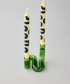 Geeignet für zwei klassische Stabkerzen (Ø 21 mm). Die Kerzenhalter lassen sich mit unterschiedlichen Kerzenfarben kombinieren – Ton in Ton oder als Kontrast. Auch die Kerzen aus der Studio-About-Kollektion in Gelb/Blau oder Ocker/Rosa passen sehr gut!