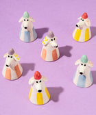 Dieser süße Hund wurde aus Steingut gefertigt und mit einer Schicht transparenter Hochglanzglasur für eine glänzende Oberfläche handbemalt. Auch als Mama-Pinguin erhältlich!
