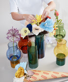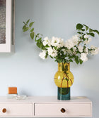 Ob mit einem üppigen Blumenstrauß, einzelnen Zweigen oder ganz ohne Inhalt – die Vase wirkt für sich. Das Zusammenspiel von Glas, Licht und Farbe macht sie zu einem besonderen Objekt in jedem Raum.