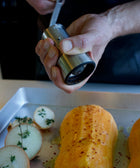 Wenn Sie ein anderes Gewürz verwenden möchten, mahlen Sie zunächst etwas grobes Salz durch die Mühle. Dadurch werden Rückstände entfernt und die Keramik gereinigt.