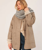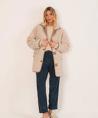 Dieser Mantel hat eine weite, komfortable Passform mit Raglanärmeln und einer durchgehenden Knopfleiste. Er verfügt über aufgesetzte Taschen und kann beidseitig getragen werden, wodurch sich verschiedene Looks kombinieren lassen. Der Relaxed Fit sorgt für ein leicht lockeres Tragegefühl.