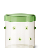 Feine grüne Spitzen, die an Agavenblätter erinnern, verleihen dem Gefäß seinen besonderen Charakter. Es eignet sich zum Aufbewahren kleiner Utensilien auf dem Schreibtisch oder im Bad. Ohne Deckel wird es zu einer leichten, eleganten Vase.