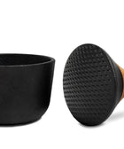 Der ergonomische Griff aus Akazienholz liegt gut in der Hand, der rutschfeste Silikonboden sorgt für Stabilität und schützt die Arbeitsfläche.