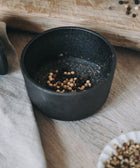 Mörser aus Gusseisen für getrocknete Gewürze. Die strukturierte, gewölbte Innenfläche ermöglicht ein gleichmäßiges Mahlen.