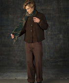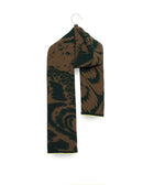 FURCULA ist ein weicher Jacquard-Schal, in Belgien aus 100 % extrafeiner Merinowolle gestrickt. Das wendbare Design zeigt ein dezentes Nachtfalterflügel-Muster auf beiden Seiten und bietet dadurch zwei verschiedene Looks in einem Schal.