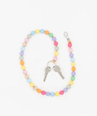 Praktisch und schön: Dieses Schlüsselband besteht aus elastischem Band und aufgereihten Holzperlen.