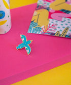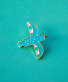 • Vogel-Emaille-Pin in Blau, Grün und Weiß.
