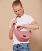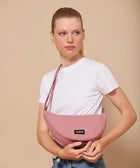 Die halbmondförmige Tasche Andrea ist eine Mischung aus Gürteltasche und Umhängetasche. Sehr praktisch mit der Öffnung oben und der Reißverschlusstasche auf der Rückseite. Perfekt für jeden Tag!