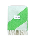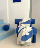 Die schöne Decke von Maison Deux wird aus 100 % neuseeländischer Wolle jacquardgewebt – dicht, weich und wendbar, mit einem spiegelverkehrten Muster auf der Rückseite und Fransen an den kurzen Seiten. Mit 130 × 200 cm ist sie großzügig bemessen, ideal zum Einkuscheln oder Teilen.
