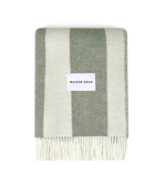 Die schöne Decke von Maison Deux wird aus 100 % neuseeländischer Wolle jacquardgewebt – dicht, weich und wendbar, mit einem spiegelverkehrten Muster auf der Rückseite und Fransen an den kurzen Seiten. Mit 130 × 200 cm ist sie großzügig bemessen, ideal zum Einkuscheln oder Teilen.