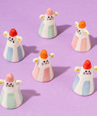 Diese süße Maus wurde aus Steingut gefertigt und mit einer Schicht transparenter Hochglanzglasur für eine glänzende Oberfläche handbemalt. Auch als Mama-Pinguin erhältlich!
