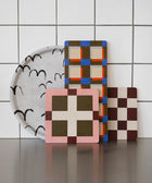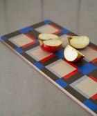 Servierbrett mit geometrischen Formen in kräftigen Farben à la Evelina Kroon. Es ist ideal zum Servieren von Käse, Vorspeisen, Brot oder als dekoratives Detail in der Einrichtung. Das Brett kann auch als Untersetzer verwendet werden und hat ein praktisches Loch zum Aufhängen.
